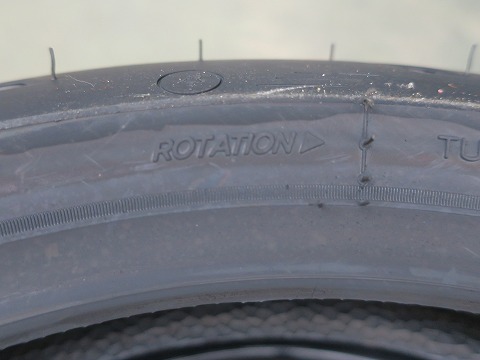 15:44 ローテーション・マーク ホイールの掃除が終わったら、新しく組み付けるタイヤのローテーション マークの確認。 相変わらず、見つけにくい。 写真に撮っても、ボケちゃうし。 |