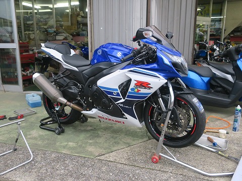 15:27 タイヤお代わり ハイエースからGSX-Rを下ろして、店先に場所を借りて作業します。 今年は、7月15日現在まだ梅雨が明けてないんです。 昨日も雨でしたし、今日も夕方から雨予報。 (+_+) でも、しばらくは降りそうも無いので、屋根が無くても大丈夫でしょう。 |