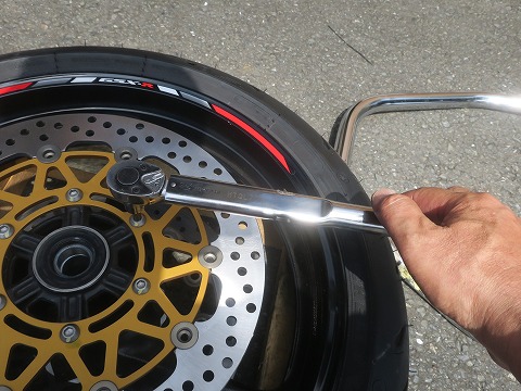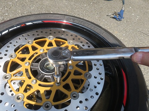 9:46 反対側も 反対側のディスクも交換して、トルクレンチで締め付け。 |