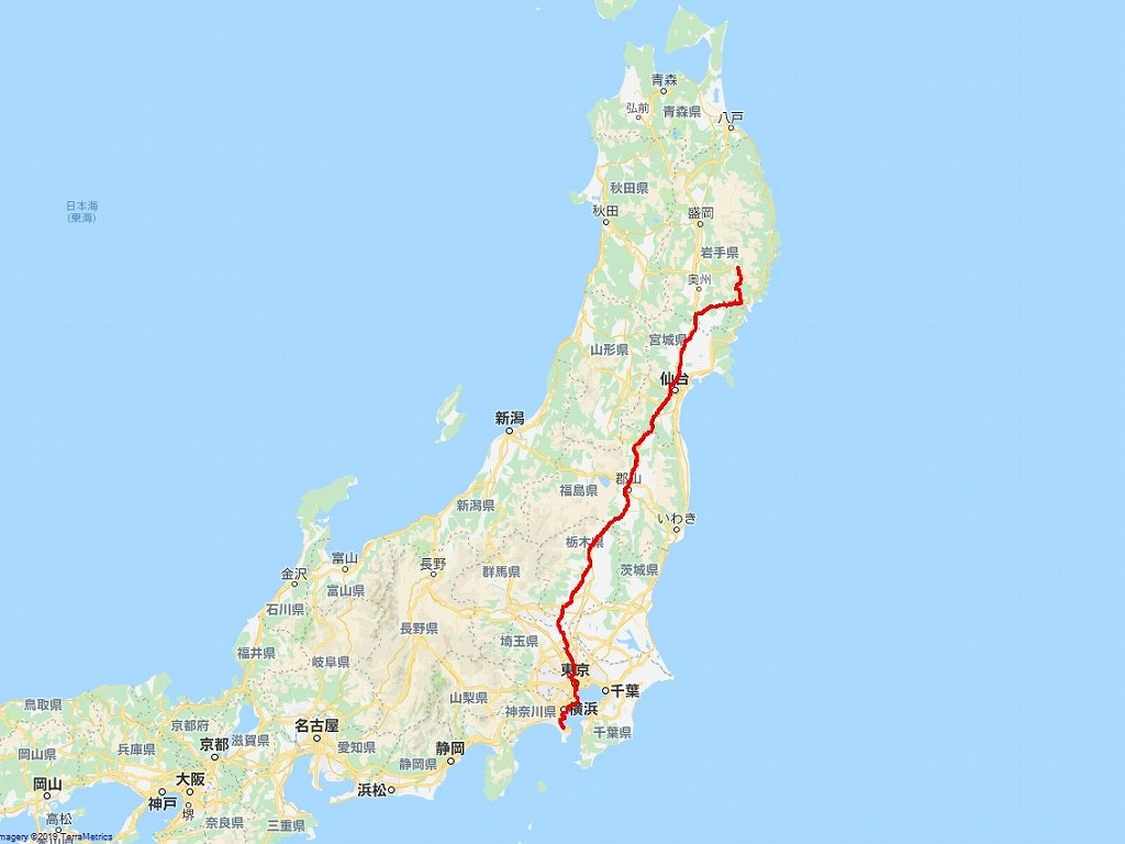 | 8月12日(月)前半の道程: 自宅〜一ノ関〜陸前高田〜遠野 :623.9km | |
