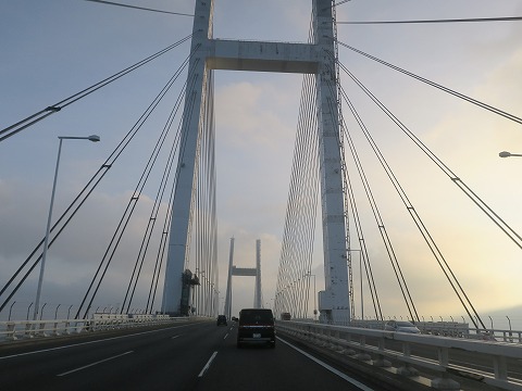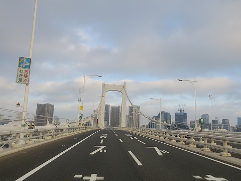 5:35 ベイブリッジで定点観測 横横の横須賀インターから朝比奈(あさひな)JCT経由で首都高速の湾岸線に入り北上を続けます。 横浜ベイブリッジを通過する際に定点観測。 東の空は雲が切れて、日差しが差し込んできています。 ”定点観測”って書いたけど、今年バイクでベイブリッジを通過するのは初めてでした。 ハイエースでは社宅と自宅の往復でほぼ毎週走っているんですけどね。 |