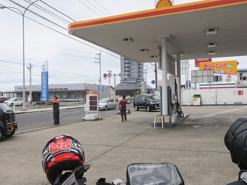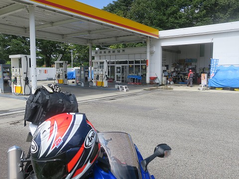8:21 1回目の給油 お腹を満たしたら、1回目の給油。 自宅からここまで約260km。 GSX-Rで、普通に走って燃料ランプが点くか点かないかの距離。 2017年、2018年のツーリングでここまで無給油で来られることは確認済です。 |