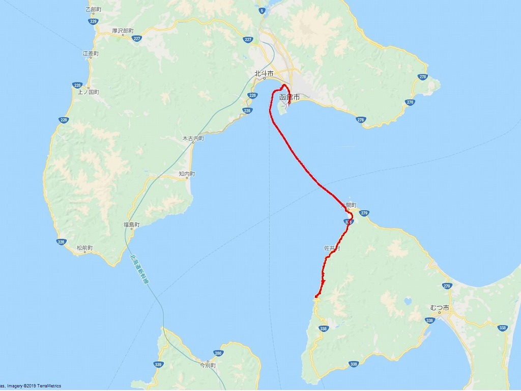 | 8月13日(火)中盤の道程: 下北郡佐井村〜大間〜函館 : | |