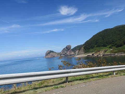 10:54 仏ヶ浦ドライブインを出発 うに丼を食べ損ね、泣きながら仏ヶ浦ドライブインを出発します。 国道338号線 通称海峡ラインを北上して大間のフェリーターミナルに向かいます。(笑) 福浦漁港を過ぎると、左手に津軽海峡の海岸線を見ながら国道338号線は北上します。 |