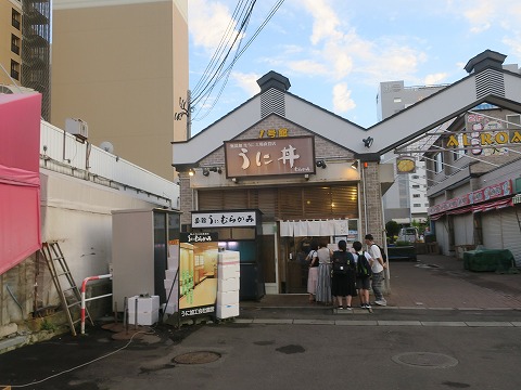 18:22 うに丼 朝市のはずれにある”うに むらかみ函館本店”。 看板にうに丼の大きな文字。 今日の昼間食べられなかったうに丼。 食べログの函館市エリアで高評価なお店。 さすがに行列ができてますね。 お店の前に出ているお品書きを見ると、生うに丼4,500円(税抜き)。 これは食べてはいけない食べ物の気がする。 ビールと合わないし・・・・・ね。(笑) ※ 食べてはいけない食べ物 (2019年8月12日に記述) |
