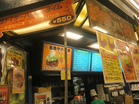18:40 注文を受けてから 店内に入り、注文。 注文を待っていたのは一組だけでした。 ラッキーピエロは、モスバーガーと同じ、基本注文を受けてから調理開始。 作り置きはしないのがポリシー なので、料理待ちのお客さんが何組か。 店員さんは、昼間の行列に対応して疲弊しきっている感満載。 ちょっとお気の毒。 店内に吊り下げられたメニューと言うかポップ。 ディスカウトショップのドン・キホーテの様に煩雑。 この手の表示方法は焦点が定まらず個人的には苦手。 |