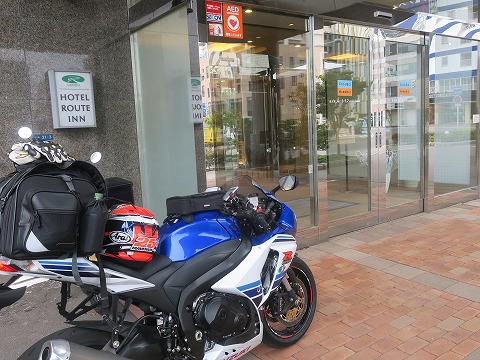 7:53 出発 朝食の後、部屋に戻って荷物をまとめ、出発の準備。 チェックアウトのときに朝食券を返したら、朝食が付かないプランもあるとのこと。 ルートインは全部朝食付きしか無いのかと思ってました。 ルートイン グランディアには朝食無しプランがあるのかな? でも、既にカード決済済で返金不可でした。 次からは要注意ですね。 チェックアウトをして、バイクのところまで。 サイドスタンドはアスファルトにめり込まずに済みましたね。 荷物を積んだところで、納沙布岬ツーリング、3日目出発します。 (つづく) |