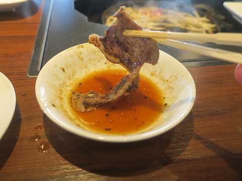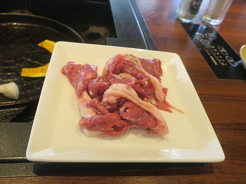 16:44 生ラム追加 漬け込み生ラムの量は150g。 150gじゃ足らないわけで、追加でオーダー 食べてみて、口に合わなかったら、夜に他の店に行こうと思っていたけど、美味しいので、心ゆくまで。(笑) 追加したのは”もみ込み生ラム”の”ニンニク塩”。 |