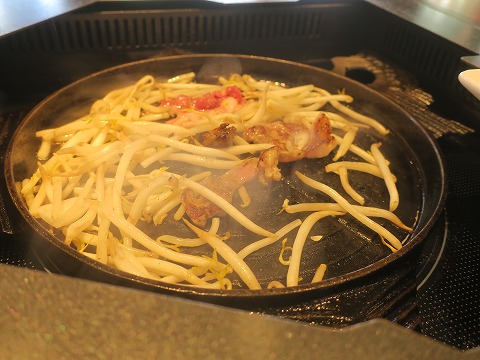 16:53 最後に 肉もほぼ焼き上げ、最後に鉄板に残った脂でもやしを炒めて。 このもやしの炒めたのがタレに合うんですよねぇ~。 |