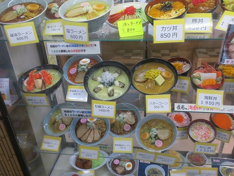 12:33 外も向けのは ショーケースには、カニ、エビ、ホタテ、イカにシャケをトッピングした海鮮ラーメンなるものが。 (O_O) でも、頼まない。 お値段1,700円と、ラーメンとしてはかなりお高い。 からじゃなくて、どう見ても外の人向けだもんね。 ここは、やっぱり中の人向けの普通のを頼まないと。 |