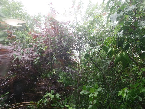 8月16日(金) 6:39 夜中、時折激しく窓を叩く雨に起こされながら、朝を迎えました。 まあ、晴れていることは期待していませんが、降ってますね。 しっかりと。 (写真だとわからないけど・・・。) |