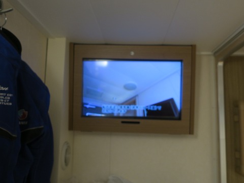 18:35 テレビが 今回予約したのは、コンフォート クラス。 まあ、2段ベットですよ。 この船の場合、どちらかと言うとカプセル ホテルみたいな造りです。 でも、各部屋(?、カプセル)には、テレビが付いている! 衛星放送なので、航海中も見られます。 進歩してるねぇ。 (^_^;) |