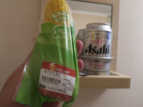 18:52 とうきびを フェリーはいつの間にか、定刻の18:45 に出航しました。 窓のない、自分のベッドルームに居ると、わかりませんが。 風呂から上がって、荷物を片付けたら缶ビール。 缶ビールは冷えたのが飲みたいので、船内で調達。 「そう言えば、とうきび食べてなかったね。」 とセコマで調達。 とうきびは地産地消を推し進めているセコマならではの”北海道産”。 ゆでとうきびをつまみにビールをいただきます。 (^_^)v |