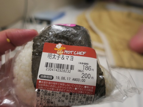 19:33 おおきなおにぎり ビールを飲んで、ちょっとだけイイ気分になったところで、お夕食。 セコマのホット シェフ コーナーにある”おおきなおにぎり”。 名は体を表す。 と言うほど大袈裟じゃないけど、普通のコンビニのおにぎりの倍くらいある。 値段は倍まではしないので、お得。(笑) 夕食をフェリーのレストランで食べるか迷ったんですが、この航路の夕食は4種類から選ぶタイプで、\1,530。 ちょっと、食指が動かなかったので、夕食はセコマのおおきなおにぎり。 |