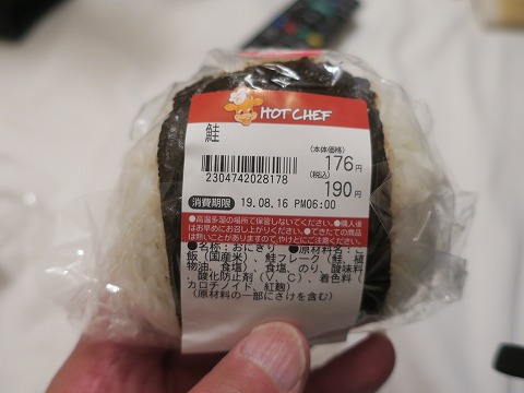19:38 消費期限が・・・ おおきなおにぎり1個で十分でしたよ。 ゆでとうきびも食べたし、ビールも飲んだしね。 で、鮭のおおきなおにぎりは、明日の朝食べようと思っていたの。 で、パッと裏を見たら、”消費期限 19.08.16 PM06:00” だって! 消費期限過ぎちゃってますよ。 (^_^;) 明日の朝まで置いておいて食べたら、たぶんお腹壊しちゃう。 いや、絶対に壊す。 と無理くり理由につけて、今食べちゃうことに。 食べ物は粗末にしちゃダメだもんね。 |