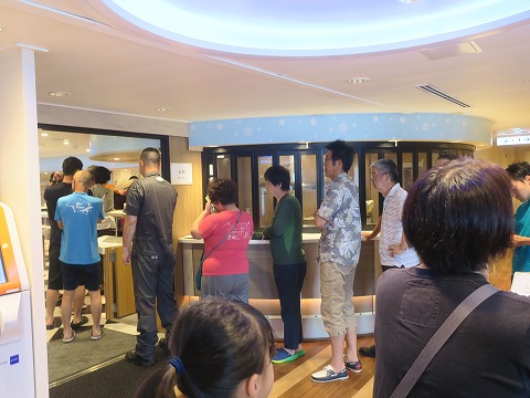7:31 並ぶ レストランは、スタッフがまずはお客さんを席に案内。 席を確保した後、各自料理を取りに行くスタイルです。 高速道路のパーキングのフードコートみたいに、料理を先に取りに行かせて、食べようと思ったら席が無い! なんてトラブルは避けられます。 でも、オペレーションが遅くなるので、入口付近には行列ができます。 |
