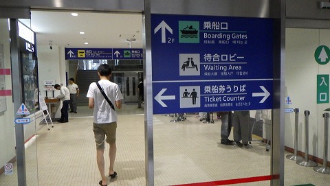 15:23 発券 バイクを列に停めたら、乗船券を発行しにターミナルビルへ。 |