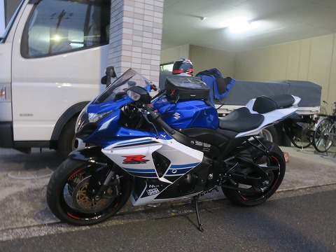 4:59 ツーリングの朝は 早い。 今朝は結構早い。 今日は行きつけのバイク屋さん”K2Y”主催のツーリングです。 今回は福島方面に行くと言うことで、早朝の集合になりました。 北に向かうので、今週末は葛飾金町の社宅から出発。 仕事先の駐車場に駐めておいたハイエースからGSX-Rを下ろし、出発の準備をそそくさと。 |