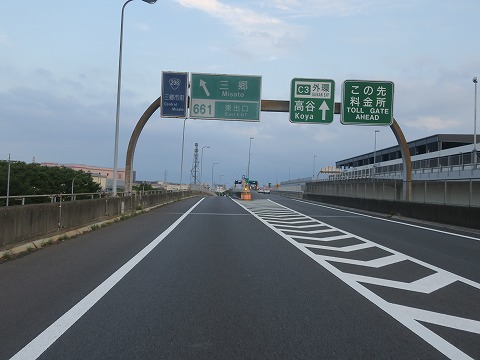 16:59 追いついた ゲートの信号がグリーンになったら、猛ダッシュ。 北関東道上で追いつきました。 ここから先、友部JCTから常磐道に入り南下して一路三郷を目指します。 |