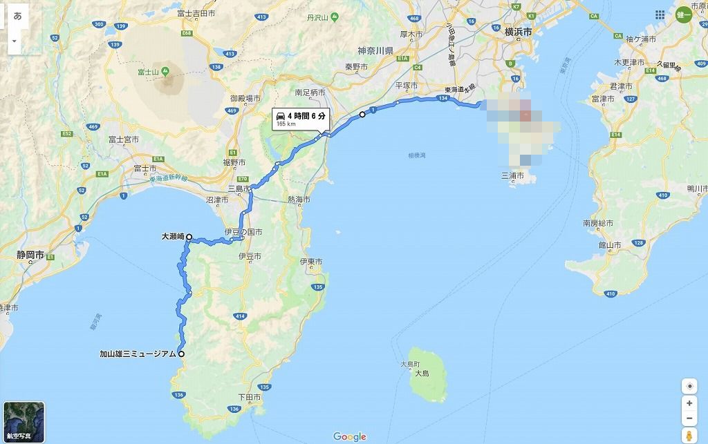 17:44 自宅に帰着 三島塚原ICからは国道1号線で箱根の山を登って下りて、そのまま箱根口から西湘バイパスに入ります。 西湘バイパスを東進して起点の大磯東ICまで進んだら、そのまま国道134号線で湘南の海岸線を東進し、横須賀の自宅まで戻ってきました。 |