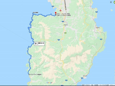 | 帰路の道程:堂ヶ島〜大瀬崎〜自宅:165km | |