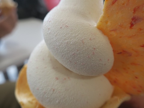 15:08 明太ソフト ソフト クリームと言っても、ただのソフト クリームじゃありません。 明太ソフト。 なったって、明太子のかねふくが運営するテーマ パークだから。 明太子無くして、語れないのだ。 ソフトクリームに練り込まれた明太子のつぶつぶ。 明太子の味はしない程度に練り込まれています。 (味覚が鈍い自分には、わからないだけかもしれません) わずかに明太子の塩味を感じます。 |