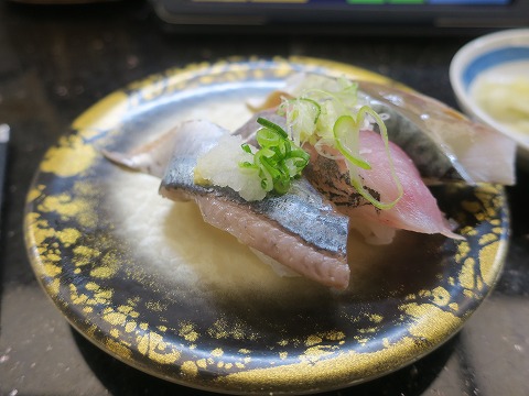 13:01 光り物 続いて、光り物三種。 さて、3種は何だったか? 一番奥のは、サバ。 サバはわかる。 サバ模様だから。(笑) あとはアジ。 真ん中がアジだったかな。 そして、最後の一つは・・・・。 イワシっぽいかな。 サンマは今年高いから、たぶん三種盛りには載ってないと思う。 光り物はどれも地元のものらしく、新鮮で美味しいです。 |