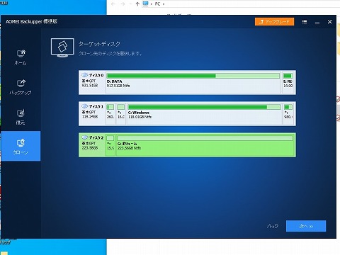 他のソフトで と言うことで、気を取り直して他のソフトでやってみることに。 探してきたのは”EaseUS Todo Backup”。 https://jp.easeus.com/backup-software/free.html 基本、前のAOMEI Backupper と同じ、丸々バックアップを取るソフト。 を、インストール。 |