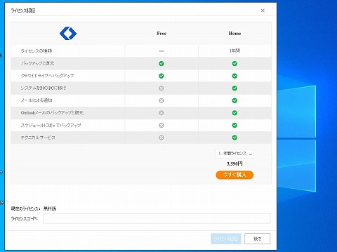 無料の範囲は で、このソフトも基本同じで、簡単なバックアップ(コピー)は無料、難しいのは有料。 ライセンスの認証画面では、システムのクローニングに該当する3行目の”システムを別のドライブに移行”は有料。 となっていますが。 フリーの範囲でトライ! |
