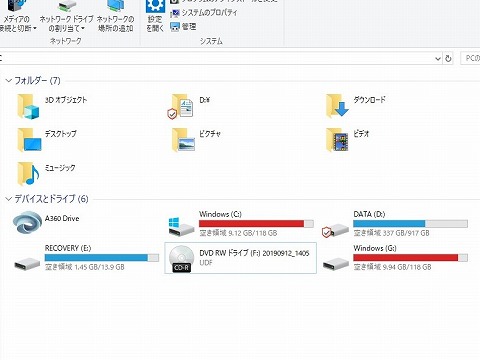 クローニング完了 クローニングが完了したみたいです。 エクスプローラで確認してみると、システムのドライブCと同じ容量の ドライブGが出来ました。 ドライブGのSSDの容量は240GBありますが、クローニングするとドライブCを丸々コピーするので、容量はドライブCと同じ 128GBでパーティションが切られます。 これは後で、パーティーションを変更することにして。 |