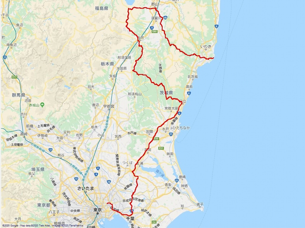 | 1日目の道程:葛飾金町〜K2Y〜牛久阿見IC〜日立中央IC〜白河〜郡山市〜いわき市:457.3 km | |