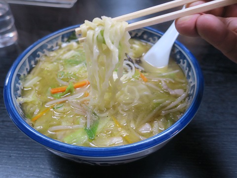 13:57 ノスタルジー それではいただきます。 麺は太めの縮れ麺。 野菜を炒めたときの油がスープの表面を覆って、スープがなかなか冷めません。 いつまで経っても熱々です。 野菜たっぷりで、野菜のうま味 甘みがスープに出て美味しいです。 でも、今は亡きご主人が作っていた頃の方が美味しかったと思うのは、ノスタルジーかな。 |