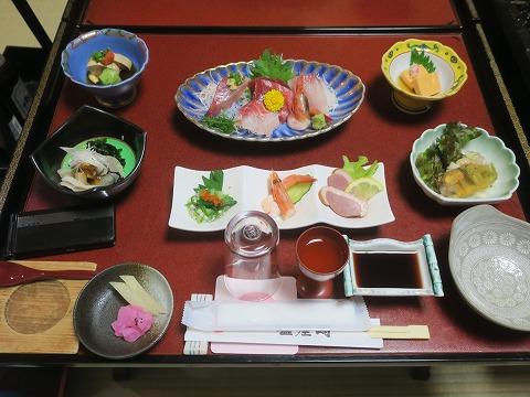 19:04 夕食 温泉に入って出た汗が引いた頃 夕食タイムになりました。 去年、普通に料理を頼んで名物のアンコウ鍋を追加したら、とんでもない量でたくさん残してしまいました。 勿体ないので、今年は少なめでアンコウ コースにしてもらいました。 (それでも、相変わらず量は多い) 量が多いのをわかっていたクセに、大阪屋で遅い昼を食べちゃいましたからね。 (大阪屋も盛りが多いのだ) それでは、「いただきます。」 |