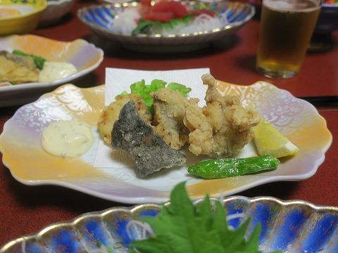 19:08 唐揚げ 後から運ばれてきたのが、アンコウの唐揚げ。 熱々で供されました。 アンコウの唐揚げは、アンコウの見た目からは想像できない白身で淡泊な味。 ホクホクで美味しいです。 |