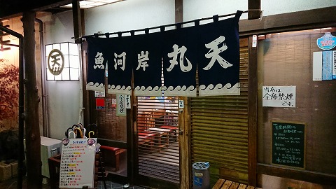 18:03 夕食に丸天 1月の初めから、静岡県の富士市で仕事をしています。 今日は仕事の後、仲間と一緒に夕食を食べに行きます。 富士では、ホテルルートインに逗留。 ホテルから歩いて行ける距離にある”魚河岸 丸天”に来てみました。 魚河岸 丸天は沼津港に本店がある海鮮を食べさせてくれる人気のお店です。 富士店には、以前昼食で一度来たことがありますが、夕食は初めてです。 今日は祝日と言うことで、混雑しているかと思いましたが、3割の入りですんなり席に着くことができました。 |