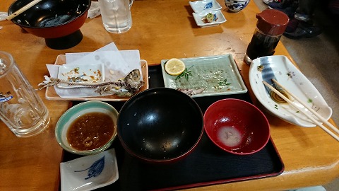 18:26 注文は 特許を取得した”のっぽなかき揚げ丼”で有名なお店ですが、注文は別のもの。 頼んだのは、真いわし御膳。 (昨晩、豪華フレンチを食べたので、地味な真いわしにしたのはナイショの話)(笑) 夕食なのでビールを飲む。 真いわし御膳には、イワシの刺身、天ぷら、塩焼きの3種の方法で調理されたイワシが供されます。 ※ ご飯が黄色っぽく写っているのは、気のせいです。 |