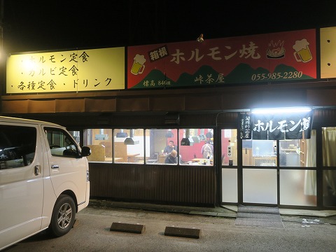 18:17 箱根峠茶屋 富士市の仕事場を後にし、新東名を長泉沼津ICで下りて伊豆縦貫経由で国道1号線に入り箱根の山を登ります。 ハイエースを運転しながら、「今日の夕食はどうすんべ。」 このルート沿い、お一人様で入りやすいお店って少ないんですよねぇ〜。 「そう言えば、箱根峠茶屋があったな。」 と言うことで、ちょっと早いですが、ここで夕食を食べて帰ることにしました。 普通 峠の茶屋と言えば、団子や甘味を供していると想像しますが、ここは”ホルモン”。 全国でも、ホルモン焼き推しの峠の茶屋はここぐらいじゃないかな。(笑) 店の前にハイエースを駐め、早速入店。 |
