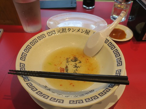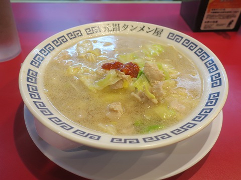 19:14 いただきます 麺は、ストレートの細麺。 能書きにも書いてありましたが、”福岡県の製麺所に開発を依頼・・・”と書いてある様に、福岡のとんこつラーメンに似ています。 味はタンメン。 ”野菜の旨味を・・・・・” とありますが、それほど感じませんでした。 ニンニクはちょっと効いているかな。 |