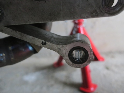 15:22 ニードル ベアリング フレーム側のリンクは、ニードル ベアリングが入ってました。 これを簡単にグリスを拭き取って、新たにグリスを塗っておきました。 グリス アップしたら、ボルトを規定トルクで締め付け。 |