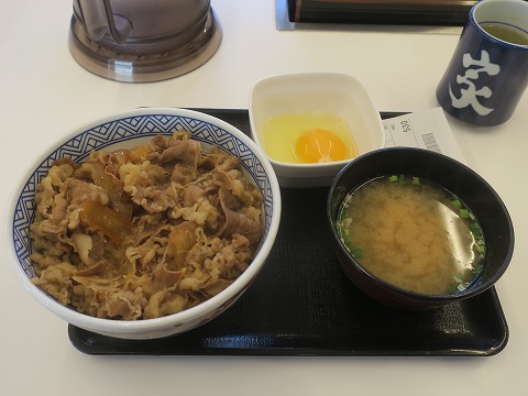 8:50 吉牛 写真を撮る意味があるのか。 ましてや、記事にする必要はあるのか疑問ではあるが、一応。 (^_^;) 吉野家の自分定番、牛丼並、タマゴ、みそ汁。 毎回、ほぼこれ。 吉野家の牛丼を初めて食べたのは、たぶん自分が大学生の時、35年位前の話だ。(笑) 初めて食べたときは、「(安くて)こんな旨いものあるんだぁ〜。」と思ったもんです。 それがインプリンティング(刷り込み)されちゃったんだろうね。 バカの一つ覚えの様に、吉牛にくるとこれ。 しかも、松屋とかすき家とか他の牛丼チェーンだと、不思議と牛丼には食指が動かないんだなぁ〜。(笑) |