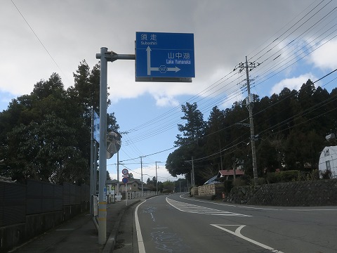 11:16 山中湖方面へ 造成中の富士山麓フロンティアパークから引き続き県道147号線を西走。 山中湖に向かう交差点までやってきました。 ここを直進すると、富士スピード ウェイ までは少し。 右折して山中湖方面を目指します。 |