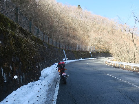 11:26 積雪が残る 県道147号線を山中湖に向けて西走中。 静岡県道147号線をそのまま進むと、県境を越えて神奈川県道730号線になります。 もうちょっと進むと三国峠を越えて山梨県側に入ります。 三国山の北側斜面にあたるこの区間は昼間も太陽光が届かないので積雪が残り続ける場所です。 私の記憶が正しければ、以前は冬期通行止めだった。 はず。 |