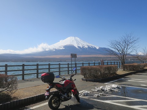 12:29 富士山ばっかでスミマセン ほうとう小作を出て山中湖畔を時計廻りにグルッと。 途中にある駐車場でGROMを駐めて、写真をば。 記事を読んでもらっている人には悪いけど、富士山の写真ばっかりだ。 この時期、空気の透明度が高いので、きれいに撮れるんですよね。 |