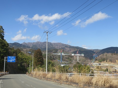 12:55 新東名の 県道147号線で小山町の市街地手前までやってきました。 この先の交差点を右折するんですが、直進すれば国道246号線に接続します。 目の前では、目下新東名の橋梁を建設中。 ヤジロベエの様にバランスを取りながら造っていくみたいですが、大きな地震でもきたら倒れないものかと不安になります。 (実際は倒れないけどね) |