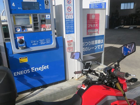 14:40 給油 国道134号線に入り、湘南の海沿いを東進。 1号線を走っている時から燃料計が点滅し始めました。 点滅が始まったら、ガソリンの残りは 1.4リットル。 多分、自宅まで戻れないので、相模川を渡ったところにある ENEOS でガソリンを給油します。 |