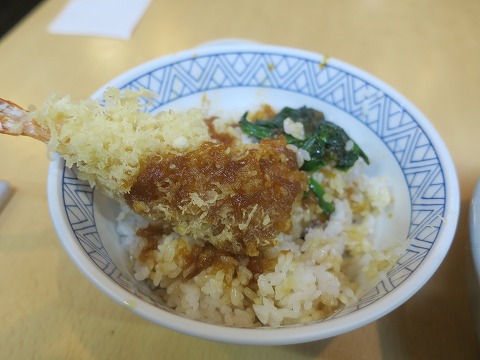 18:44 天丼は 天丼の並。 海老が一匹だけなんですね。 お品書きの値段を見たら 730円だったので、「安いなぁ。」と思ったのも、これを注文した理由。 でも、海老一匹だけに納得。 で、この天丼の汁が甘い。 かなり甘いです。 これまでに食べた天丼の中で一番甘いですね。 と言っても、これまでの人生で天丼は10杯も食べてないと思うけど。 自分には甘過ぎでした。 |
