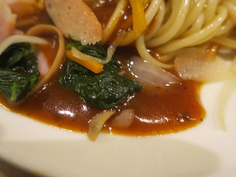 18:11 あんは 接写してみる。 あんかけスパゲティの”あん”はトマトベースのソースです。 店により色々と工夫をしていて、このあんがポイントだそうで。 3日間煮込んで作っているらしい。 あんは片栗粉か何かでとろみをつけてあります。 |