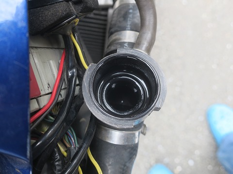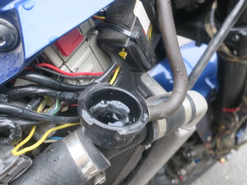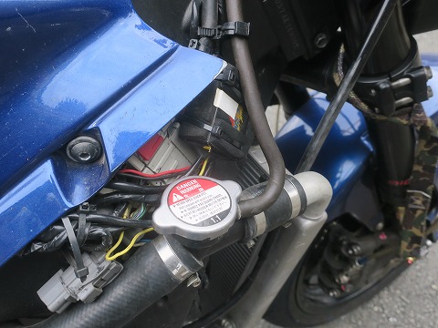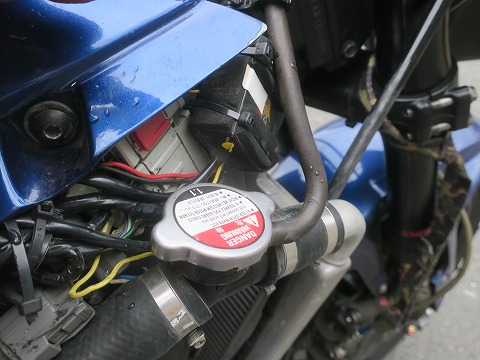 16:30 入れました ラジエータ キャップぎりぎりまで、入れました。 下のホースとかを指で押してムニュムニュして、エアーが抜ける様に。 これでも、エアーは抜けません。 ので、一旦暖機して、冷えたら確認して補充するんですけど。 いくらサーキットの騒音規制を通っているとは言え、住宅街の真ん中でST600のエンジンをかけたら、ぜったい近所の人に通報されます。 昼間でもね。 (笑) |