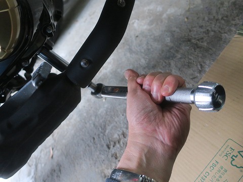 17:10 ドレンボルトを締める オイルが抜けたところで、ドレンボルトを締め付け。 トルクレンチを使って、締め忘れが無いように。 |