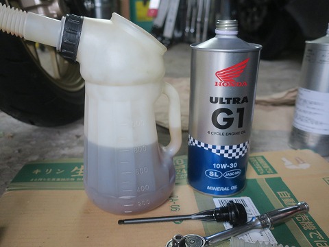 17:03 オイルは 指定オイルは、ULTRA G1(10W-30)。 去年の秋まで乗っていたCRF250と同じ銘柄で、在庫が残っていたので助かりました。 |